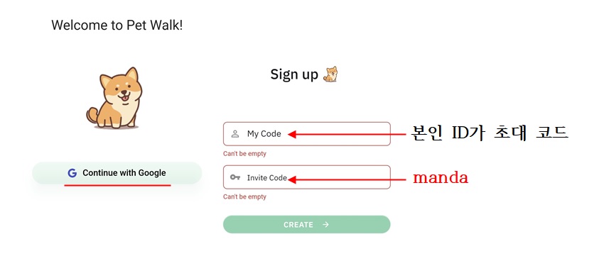 My Code : 본인 아이디 (8글자 이하) / 초대코드가 됩니다