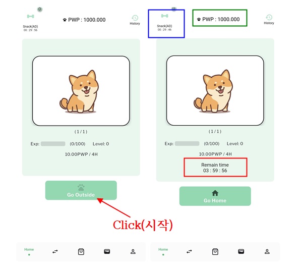 - 우측 사진에 보면 채굴시간이 4시간으로 보입니다. / 4시간에 10PWP 얻을 수 있네요