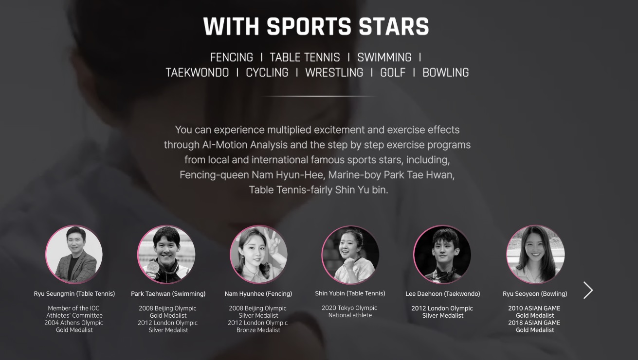국내외 유명 스포츠&피트니스 스타들이 제공하는 트레이닝 프로그램을 통해 사용자들은 운동을 할 예정이다.
