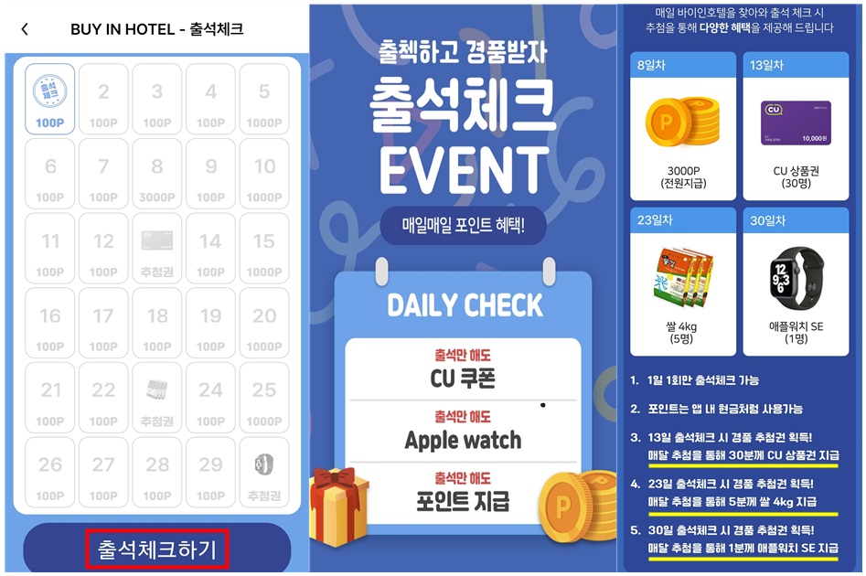출석체크로 모으고 + 이벤트로 친구초대로 포인트 모아서