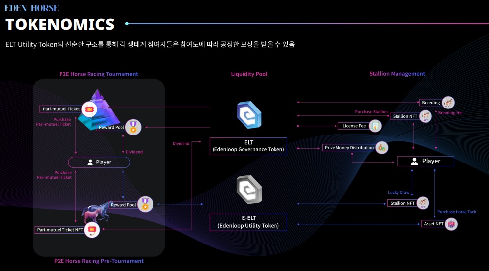 에덴루프와 (주)한국경주마목장의 합작 투자로 진행되는 프로젝트로 실제 경주마를 기반으로한 크립토 경마 게임입니다.