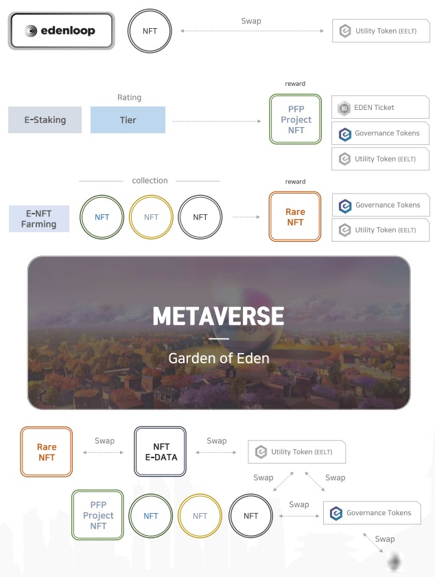 이는 EDEN NFT DATA(E.N.D)로 변화할 수 있으며, 이는 Garden of Eden 세계에서 물건 또는 EELT 재화로 교환