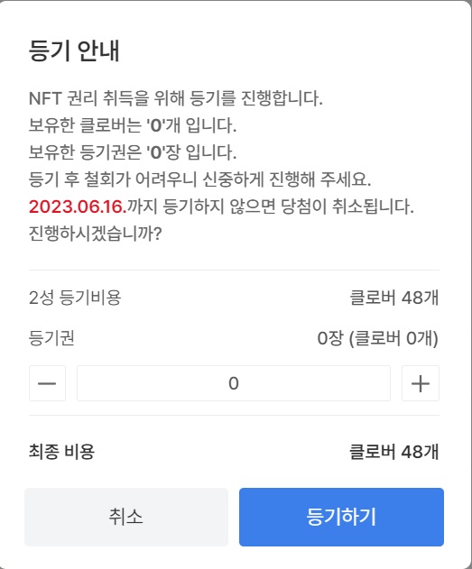등기를 하려면 등기권 or 클러버가 필요해요 ㅠㅠ