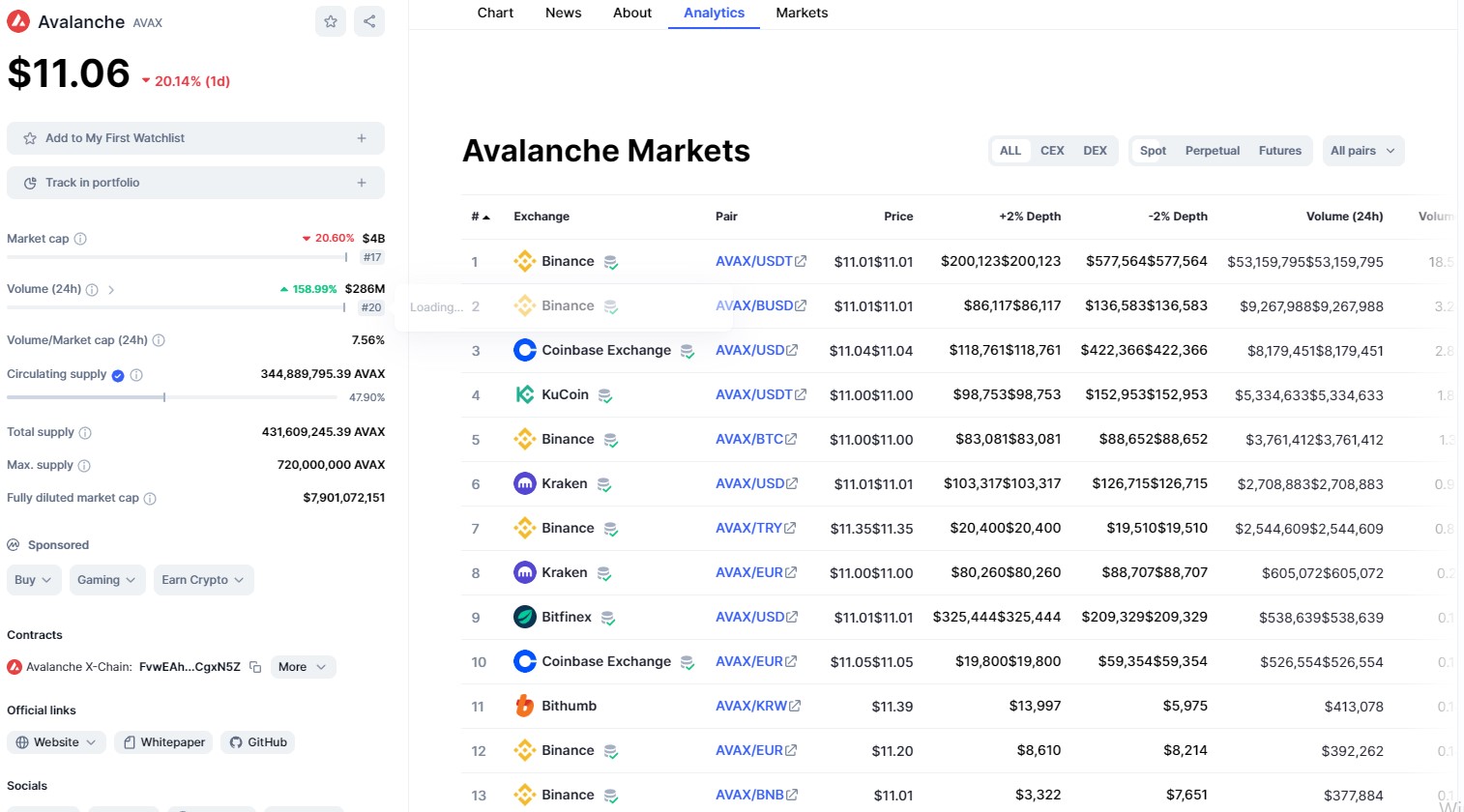 - 많은 거래소에 상장되있는걸 알 수 있어요