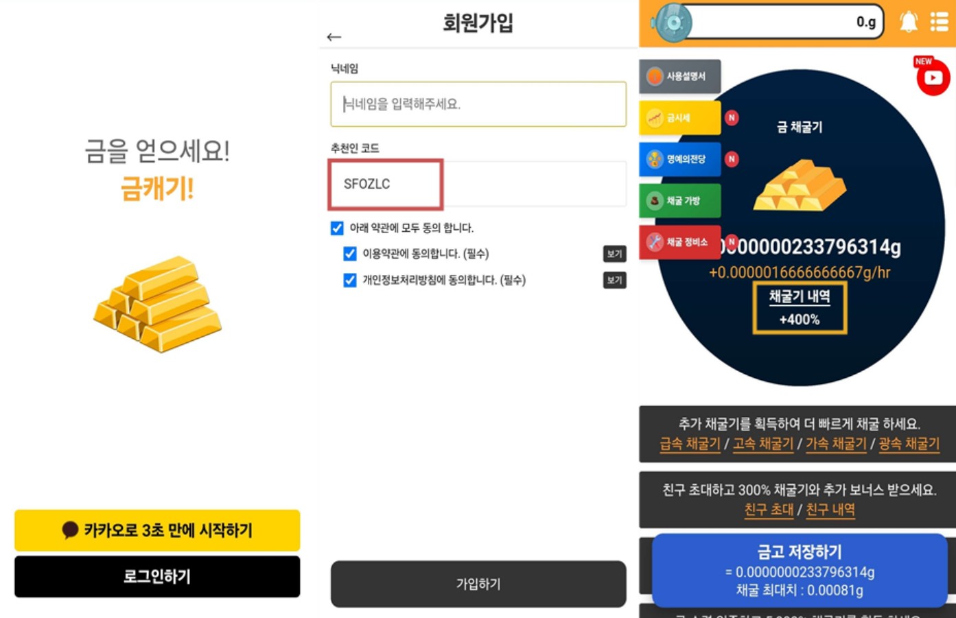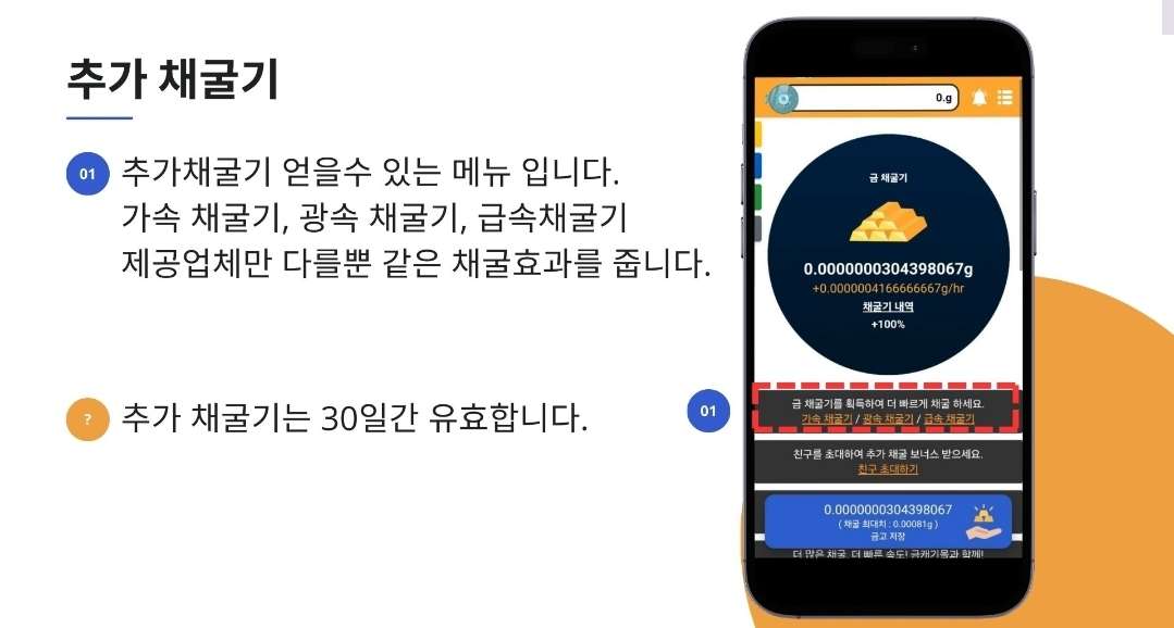 - 24시간 자동 채굴: 앱을 실행하지 않아도 금이 자동으로 채굴됩니다.